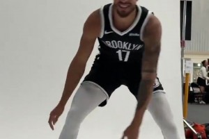 运球咋这么别扭呢!小波特身披篮网球衣拍摄定妆照