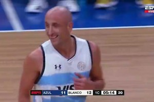 潘帕斯秃鹫47岁吉诺比利在阿根廷比赛中还能轻松扣篮啊!